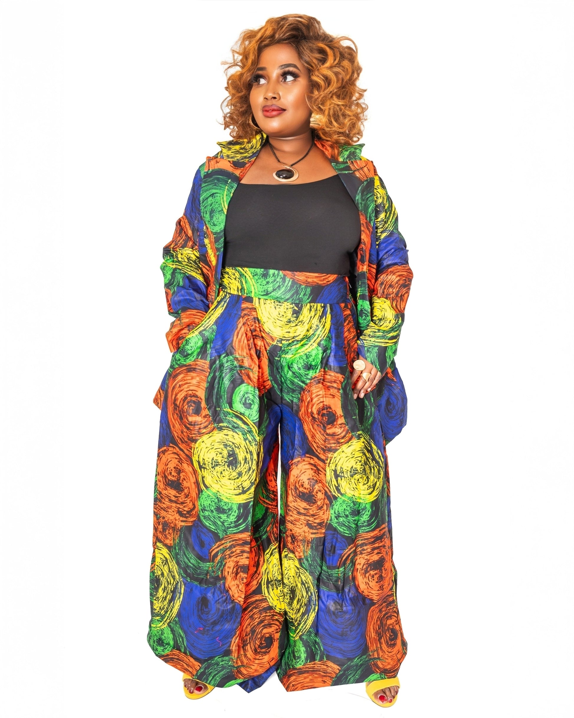 Bold Ankara Swirl Pant & BLazer– Wide Leg Design